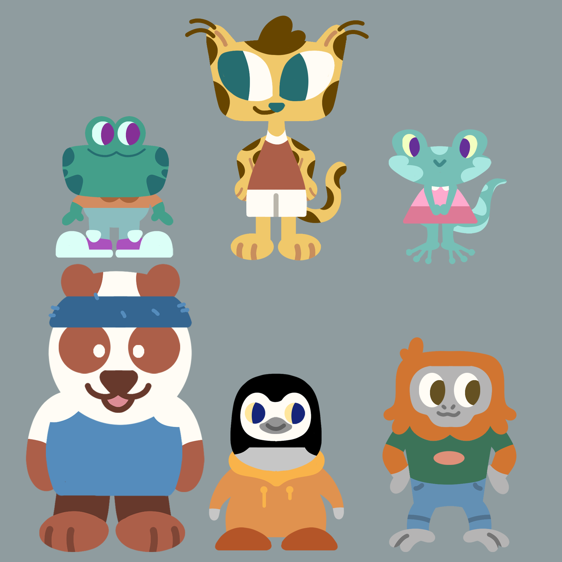 Vector artwork I did for the PBS Kids Brand Expansion, while under Karptoons. I was provided the sketches from an internal director at PBS Kids, the stock poses of each character (seen in each on the far right/bottom) and the background template by Karptoons, and I was responsible for the final design work and revisions for each sketch-based pose.